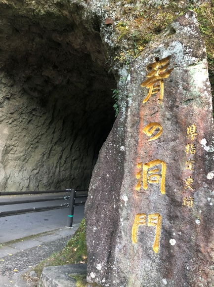 この季節は車も多く、青の洞門を歩いて通り抜ける人もたくさんでした。